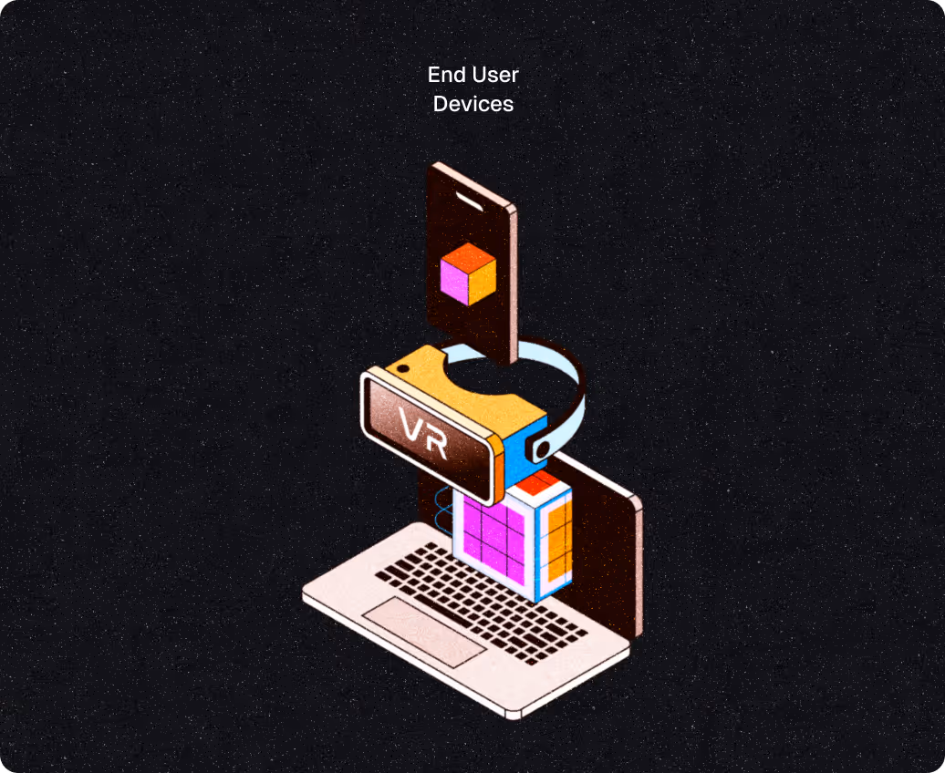 Stream to desktops, tablets, mobile, and XR headsets from a single upload. Adapts quality and resolution automatically based on device capability and network conditions.