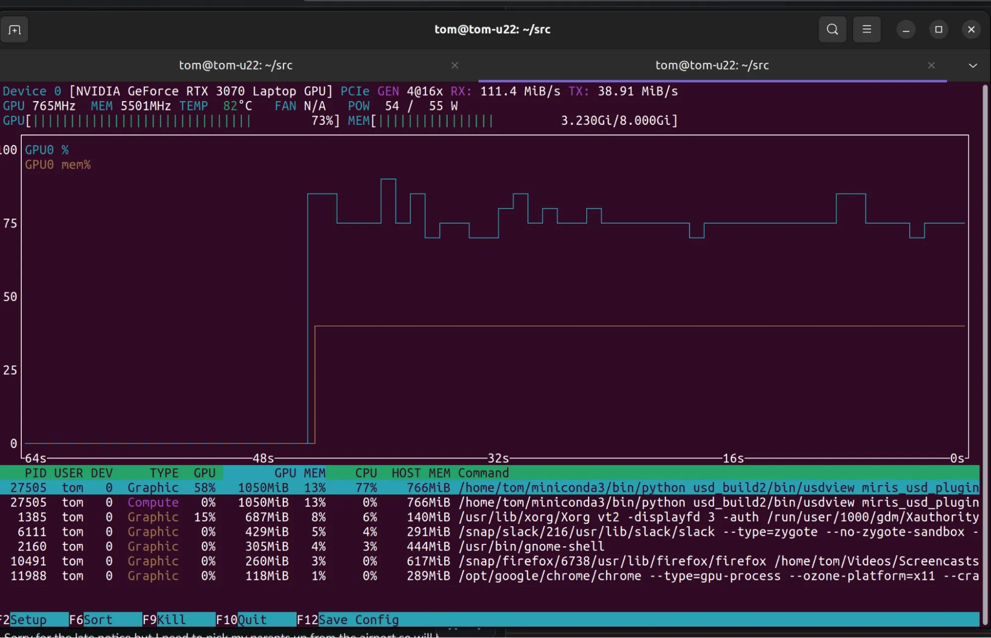 Miris’ adaptive streaming intelligently balances network bandwidth, client device memory, and visual fidelity — ensuring a smooth, responsive experience on everything from workstations to laptops to mobile devices. Using our proprietary AI system and NVIDIA software and hardware such as fVDB and GPUs from CoreWeave, users see the best possible view without overloading the device. This allows Miris to seamlessly balance interactivity and responsiveness with visual fidelity and computational resources. For our tests, we worked with powerful RTX 4090 laptop and RTX 5090 desktop GPUs, but also tested on older (and cheaper) GPUs such as the RTX 3070m. Below we will take you through our results.