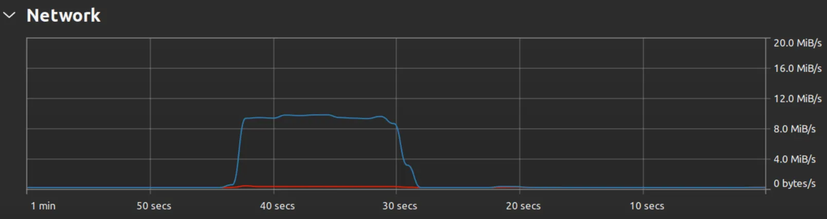 Detecting the reduced capability of the RTX 3070m, the Miris optimizer kept network throughput to an appropriate rate of approximately 80Mbps